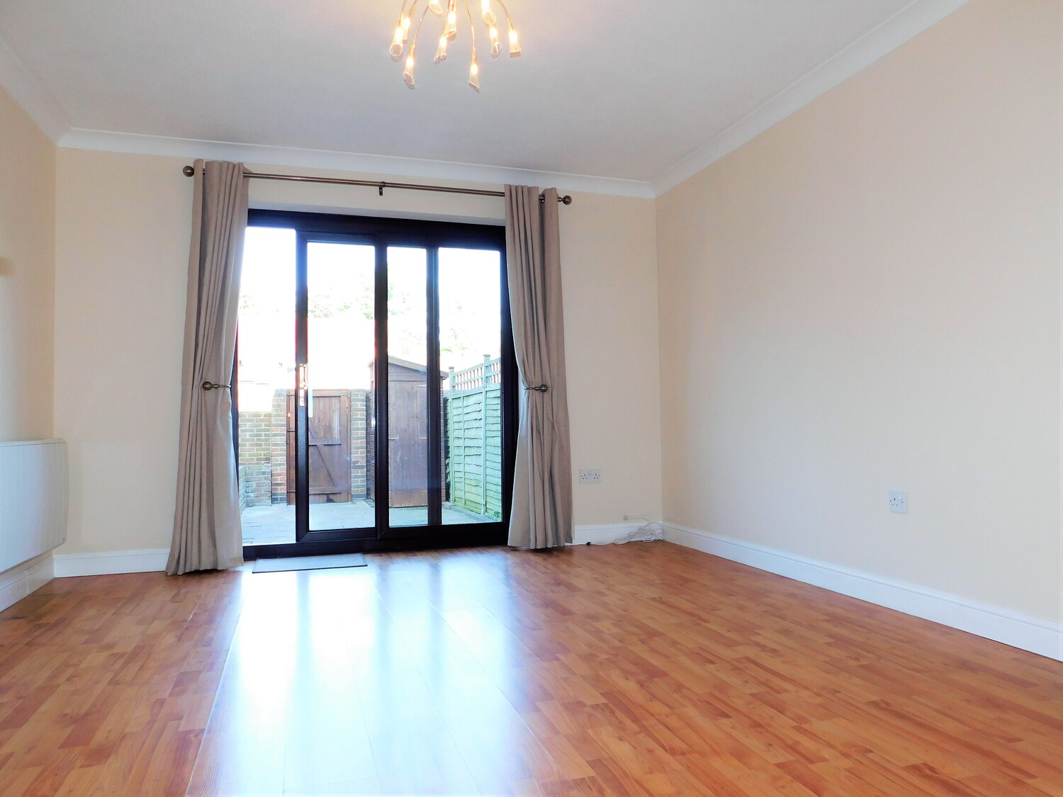 There is a good size living room with fitted storage and patio doors leading on to a private garden. The kitchen has ample units and a washing machine/fridge freezer/oven and hob.