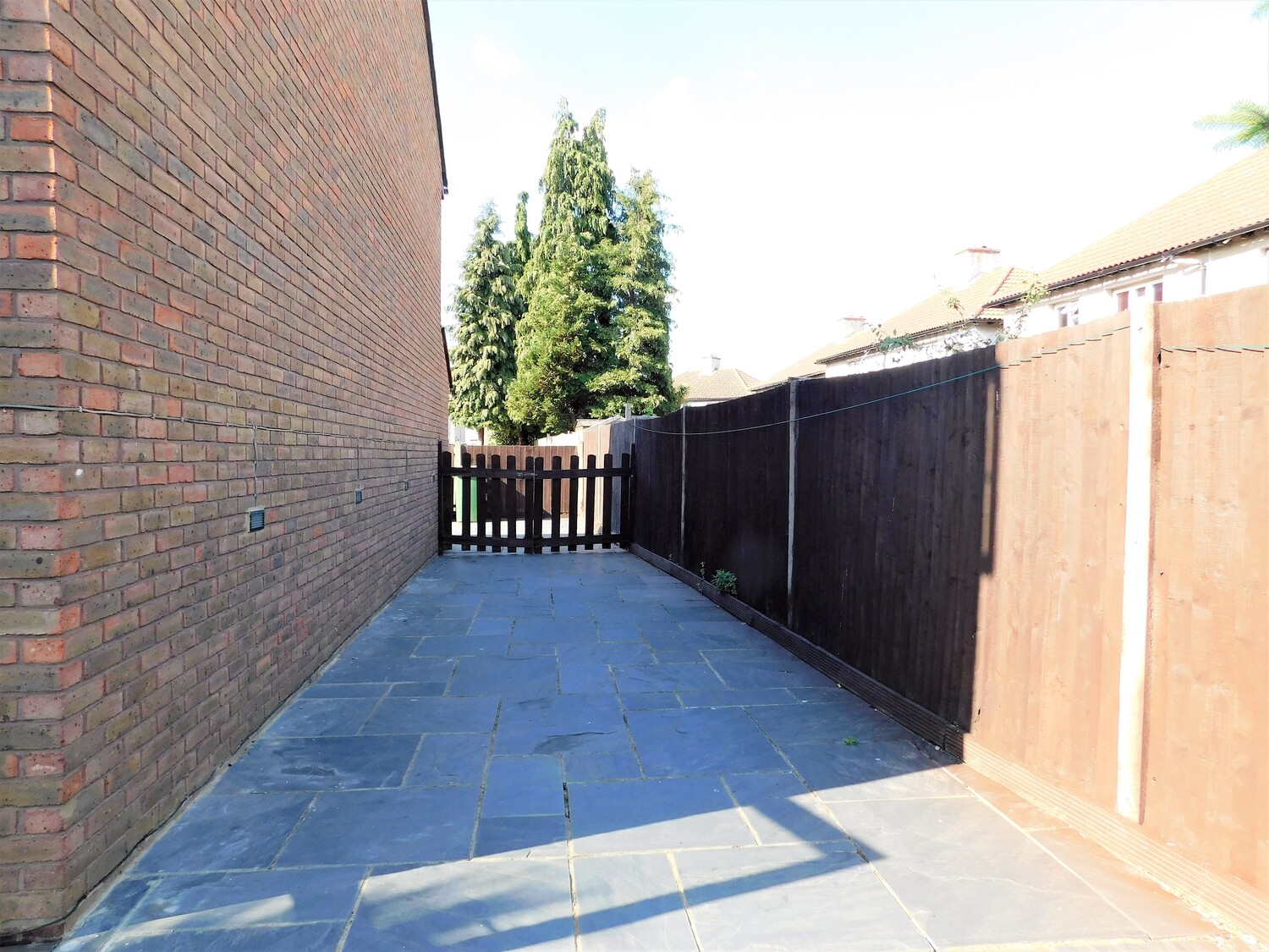 The living room is bright and spacious with ample room for dining, and the kitchen is contemporary with integrated appliances, underfloor heating and gas hob. The patio doors from the living room lead into the spacious garden completely paved for easy maintenance, with the added bonus of having a spacious side area and front garden.