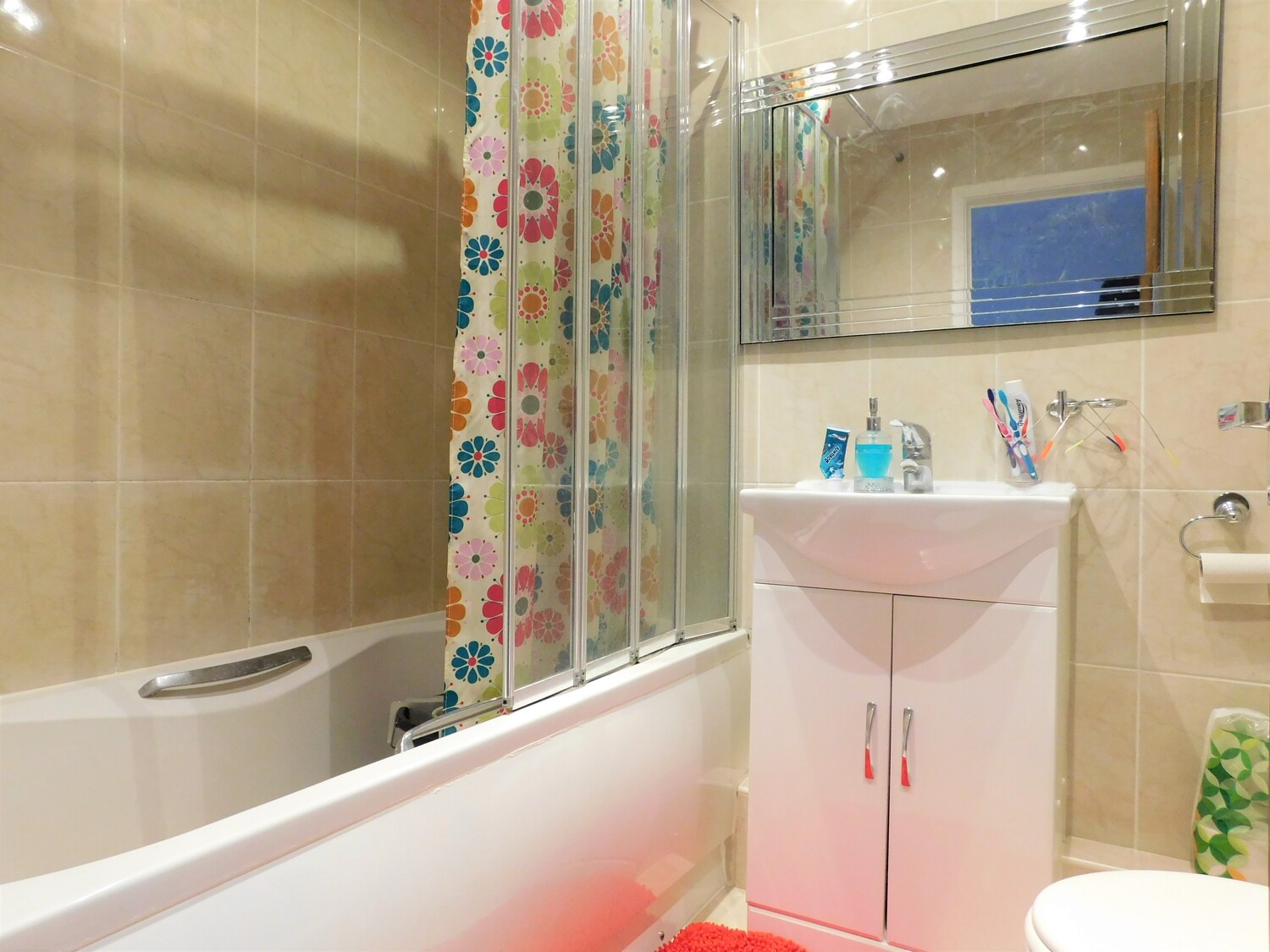 Upstairs there are two bedrooms, both good sizes and both with integrated wardrobes. The bathroom is modern with underfloor heating.