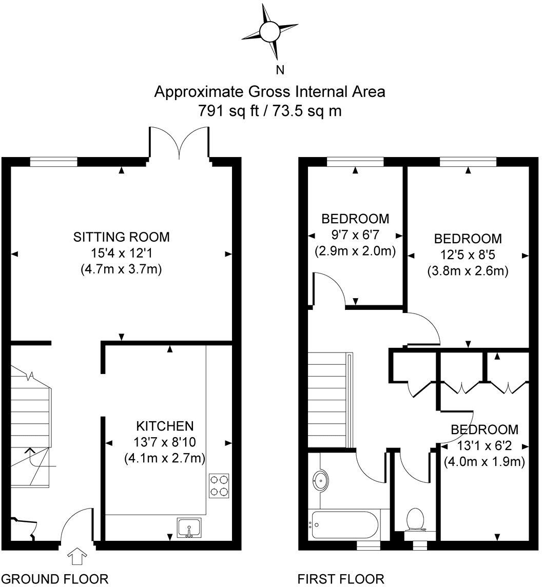 Upstairs there are three bedrooms, a modern bathroom and separate WC. There is also an airing cupboard and fitted wardrobes in the front bedroom.