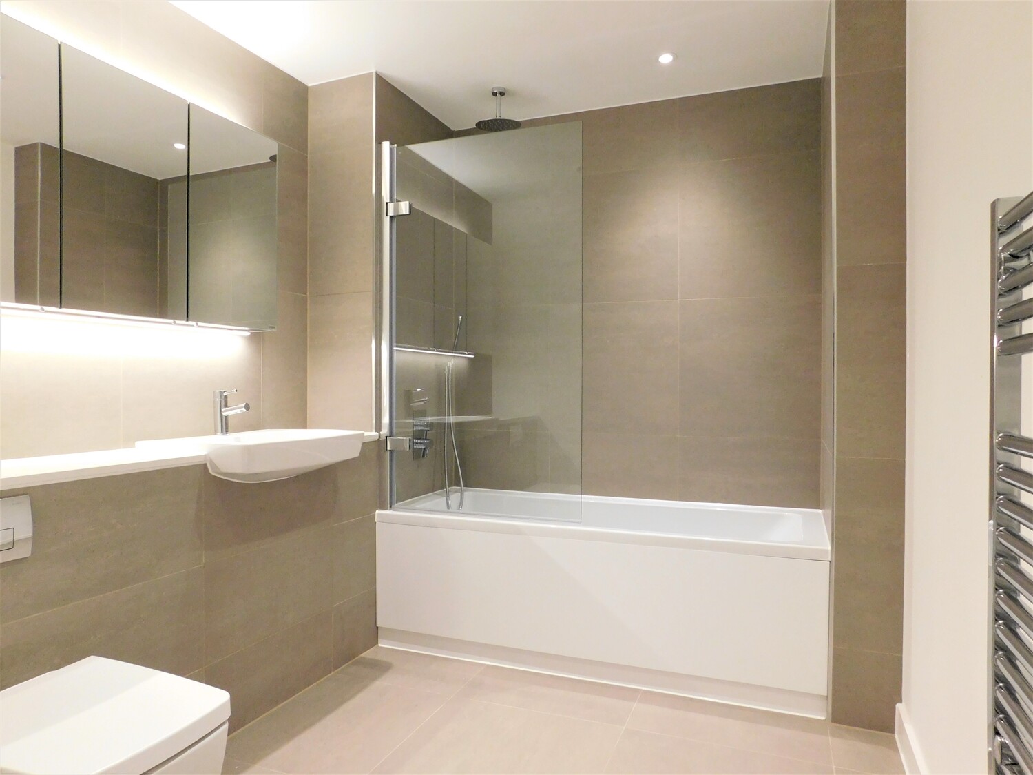There is a large bedroom with fitted wardrobes, dimmable lights and a tilt and turn window. The bathroom is stunning with bath and rain head shower, large lit cabinet and largely tiled.