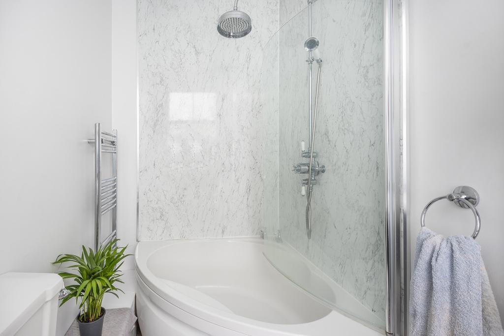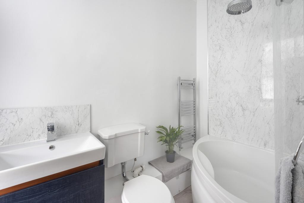 There are steps down into the bedroom to the rear of the building which has a large sash window. The modern bathroom is a good size with a large bath/shower and storage cupboard.