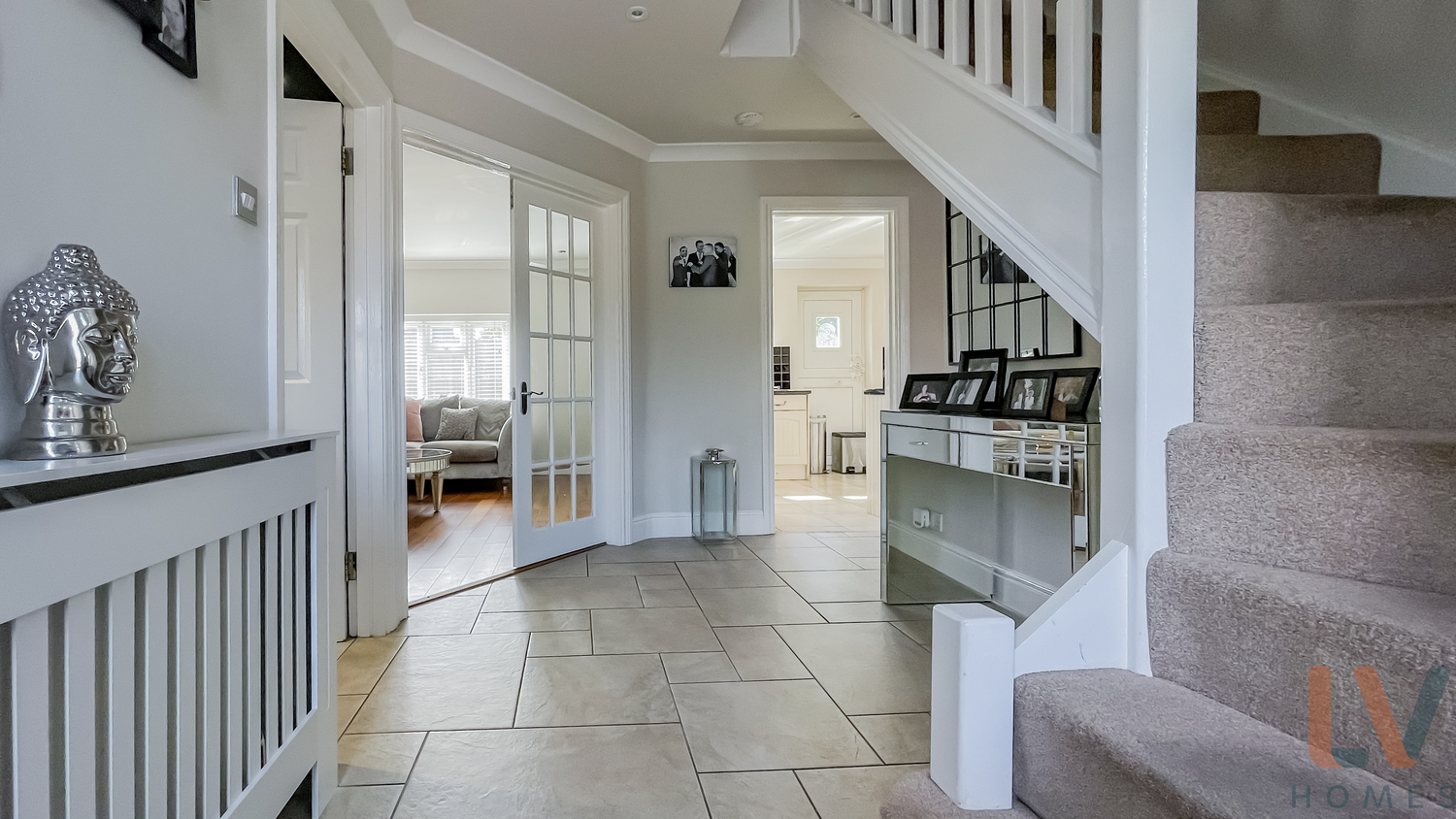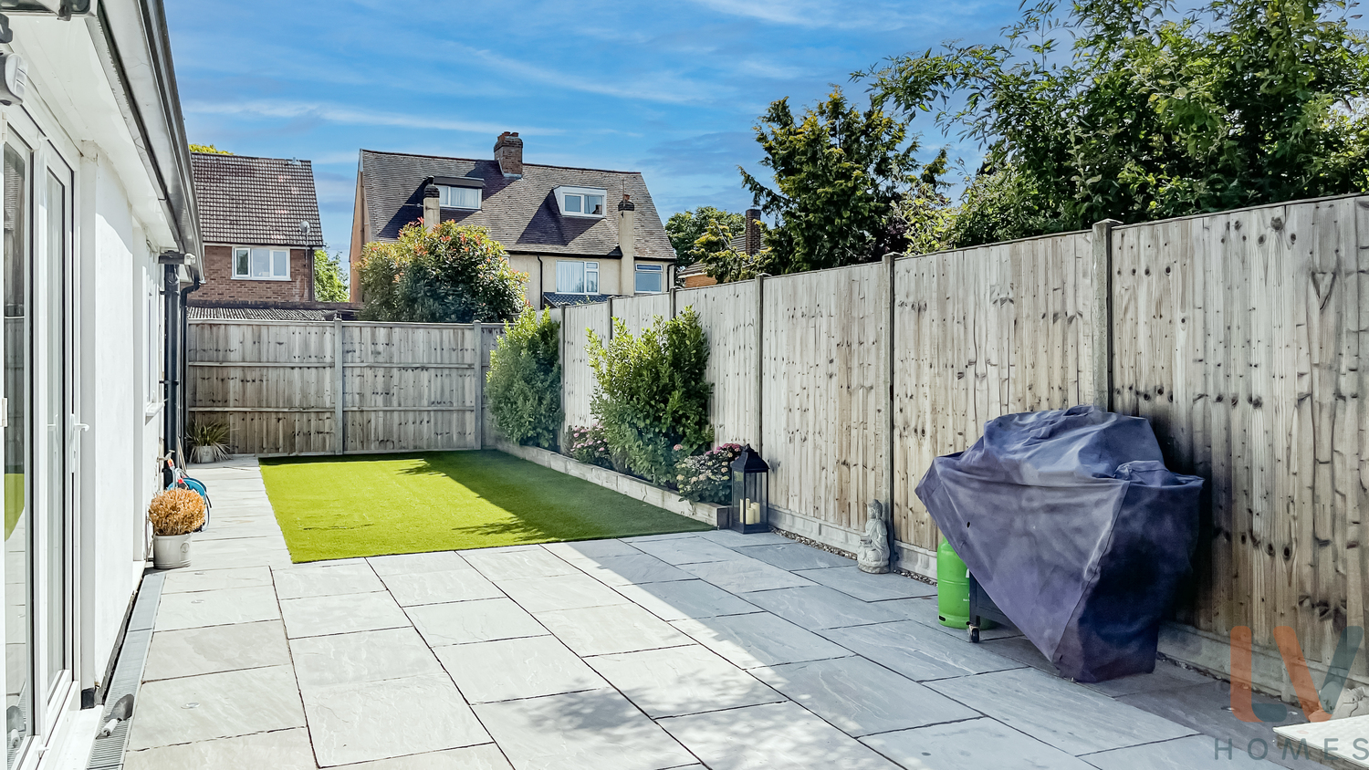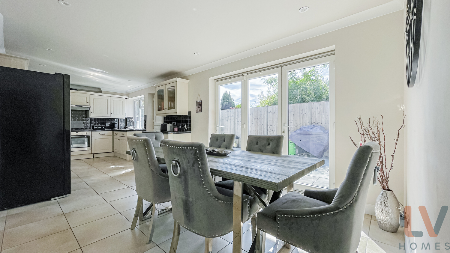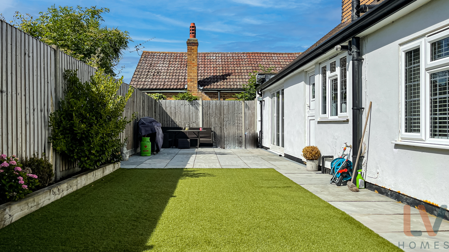 On the ground floor there is a good size living room, the kitchen is bright, spacious and open plan to the dining room which has bifold doors taking you out into the landscaped garden. The garden is partially paved with artificial lawn, perfect for entertaining.