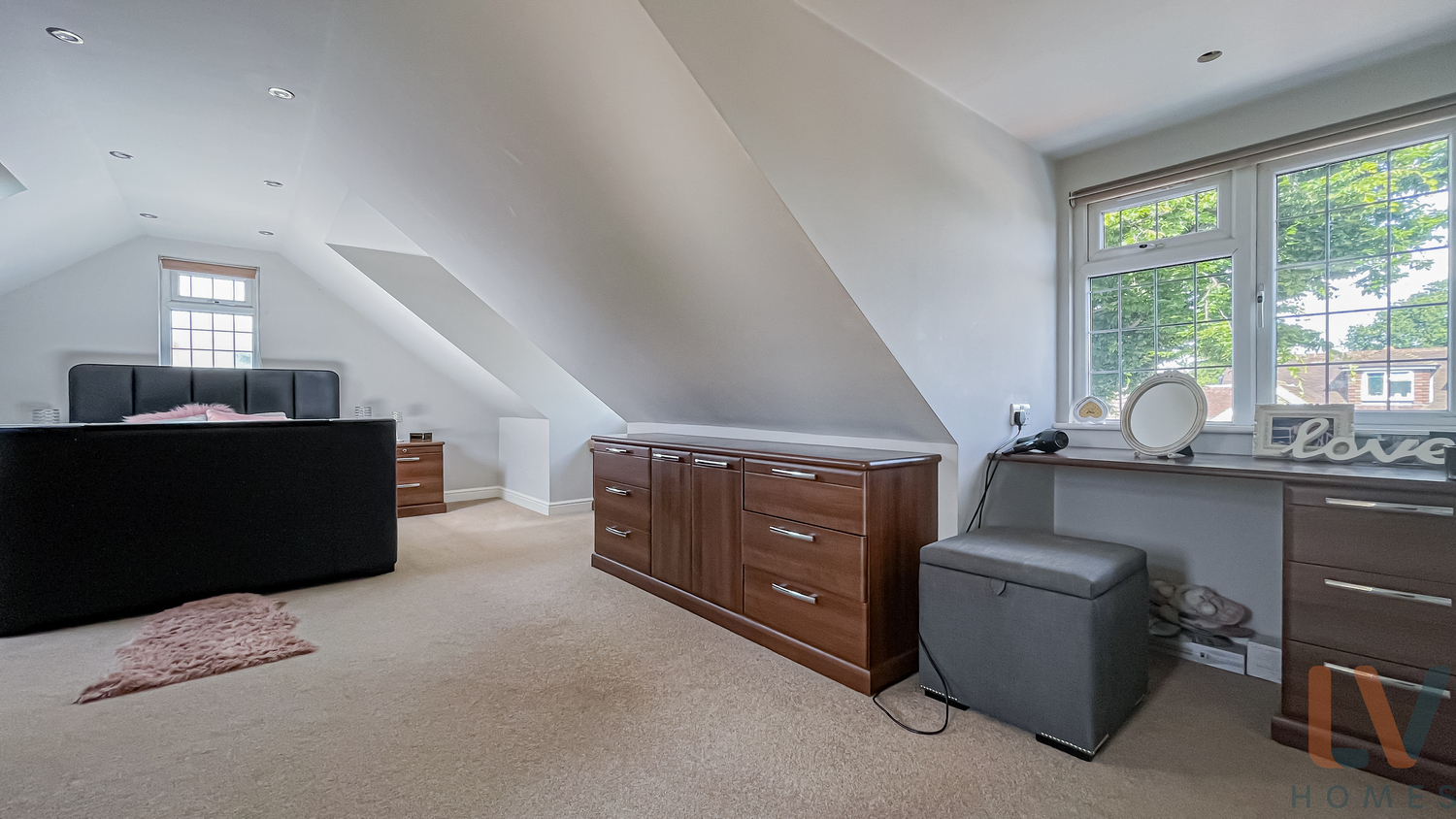 Upstairs there are two large bedrooms, one with a walk in closet and the other with fitted wardrobes. There is also a modern shower room.